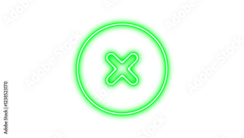 Obraz premium Neon symbol circle xmark icon green color glow with transparent background