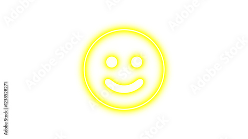 Fototapeta premium Neon symbol face smile icon yellow color glow with transparent background