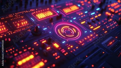 Obraz premium Neon Synthwave Control Panel: Futuristic Digital Interface