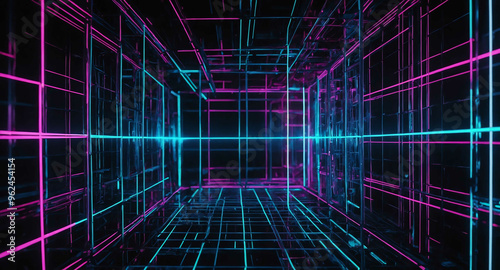 Obraz premium Neon tech grid with glowing connections abstract background