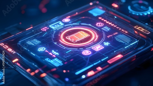Obraz premium neon tech hud battery interface - cyberpunk aesthetics