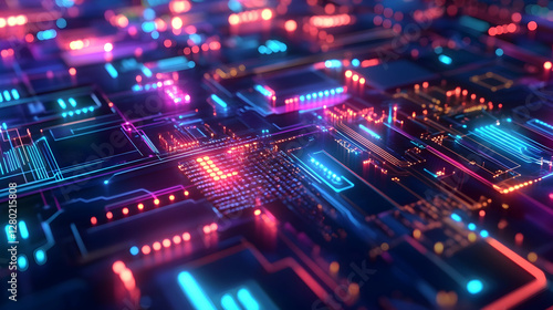 © hamza, Fototapeta premium neon technology circuit background