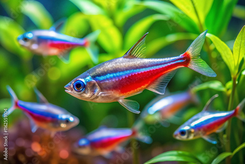 Fototapeta premium Neon tetras swimming in lush aquarium