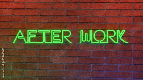 © Paul, Fototapeta premium Neon text "AFTER WORK" on a brick wall.