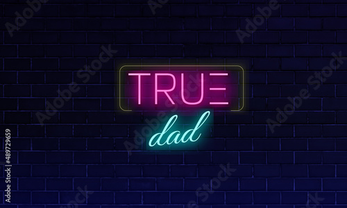 Fototapeta premium neon text true dad in pink and blue
