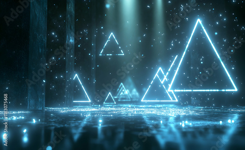 Obraz premium Neon Triangles in a Digital Forest