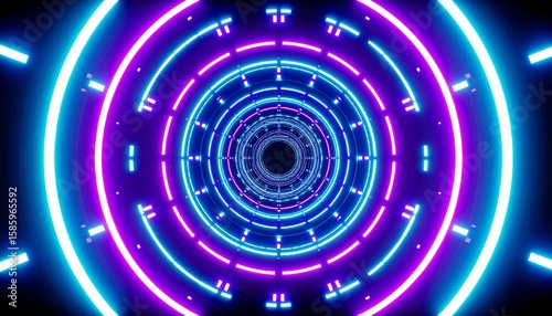 © Adista, Obraz premium Neon tunnel with concentric circles (3)