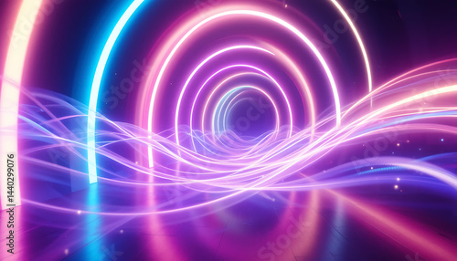 © ign kukuh, Fototapeta premium Neon Tunnel with Flowing Light