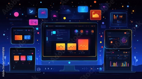 © Khoirul, Obraz premium Neon UI Design: Futuristic Dashboard Interface