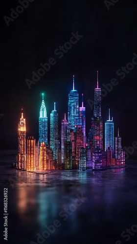 © Akash, Fototapeta premium neon urban landscape with futuristic skyscrapers glowing at night