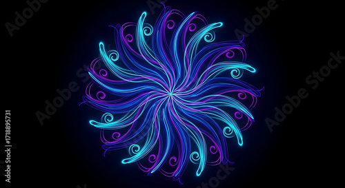 © nikon, Obraz premium Neon Wave Mandala Pattern Luminous Glow with Radiating Lines