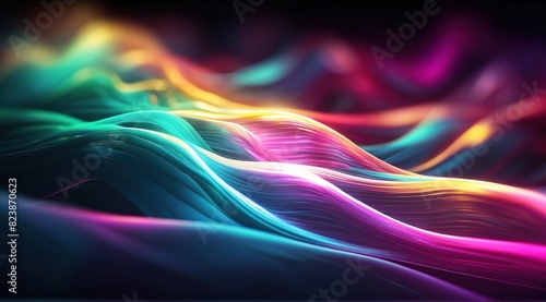 © Alief Shop, Naklejka premium Neon Waves Background. digital line art