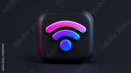 © Hoang, Fototapeta premium Neon Wifi Icon: A Vibrant 3D Render AI Generated