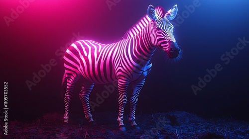 Fototapeta premium Neon Zebra on Dark Background with Striking Contrast and Glowing Stripes