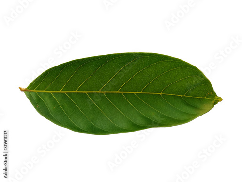 © PurMoon, Fototapeta premium Nephelium lappaceum leaves or rambutan leaf on white background. Green leaf isolated on white background.