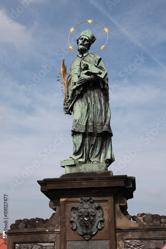 Obraz premium Nepomuk Statue auf der Karlsbrücke in Prag