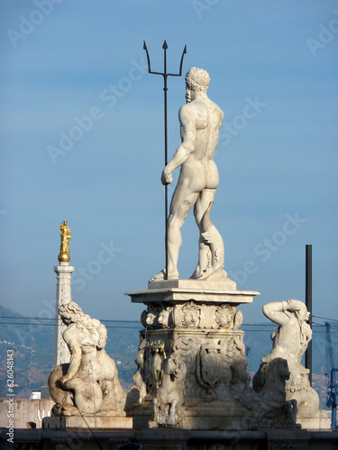 © Roland, Fototapeta premium Neptunstatue an der Hafeneinfahrt von Messina, Sizilien