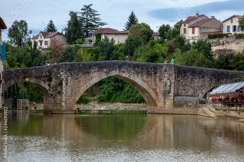 © jefwod, Naklejka premium Nerac France 10-17-2018. Old houses and bridge in the city of Nerac in France.