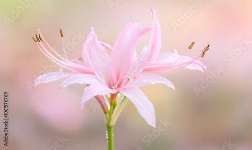 Fototapeta premium Nerine bowdenii with dew, Generative AI