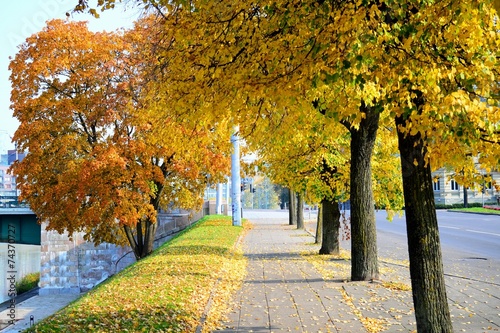 © bokstaz, Fototapeta premium Neris river board. Autumn time in Vilnius