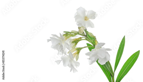 Obraz premium Nerium, oleander or rosebay with white flowers isolated on white background,...