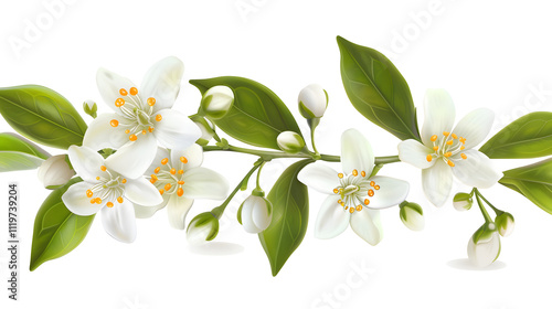 © hussain, Obraz premium Neroli blossom on white background