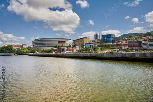 Naklejka premium Nervion river and Athletic club de Bilbao Football Stadium (San Mames), Bilbao