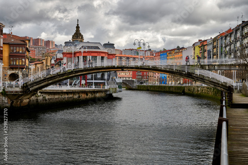 © Juanma, Fototapeta premium Nervion River and La Rivera Market, Bilbao, Biscay, Basque Country, Euskadi, Euskal Herria, Spain, Europe