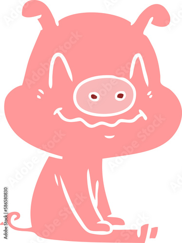 © lineartestpilot, Fototapeta premium nervous flat color style cartoon pig sitting