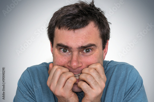 Fototapeta premium Nervous man biting his nails - nervous breakdown