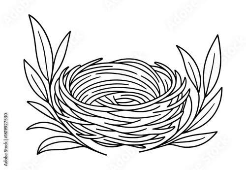 Fototapeta premium Nest outline line art, black and white doodle style. Ideal for logo, tattoo,...