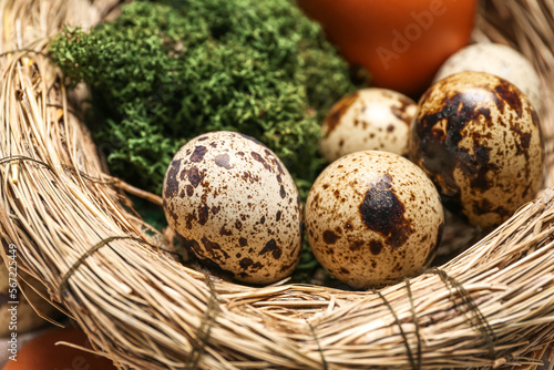 Obraz premium Nest with Easter eggs and moss, closeup