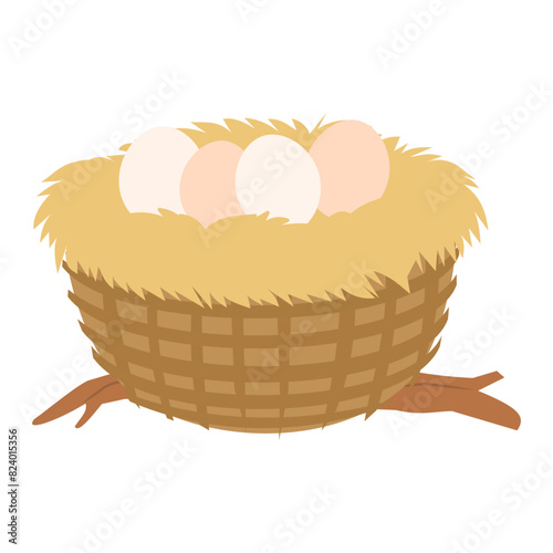 Fototapeta premium Nest with eggs vector illustration isolated on white background