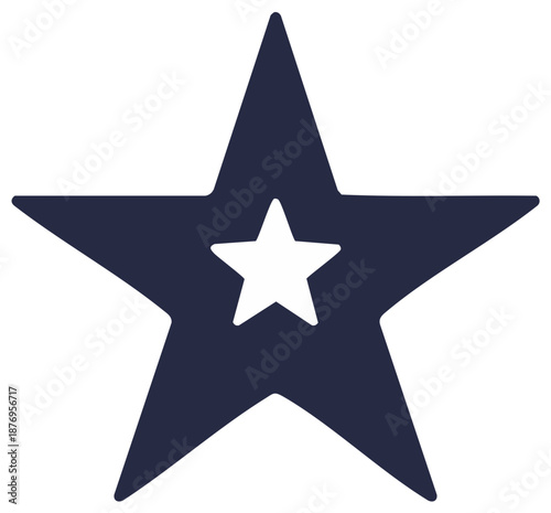 Fototapeta premium Nested five-pointed stars, dark blue outer and white inner, abstract graphic design element