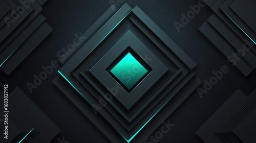 © berkah, Obraz premium Nested teal and dark gray squares, layered effect, subtle glow