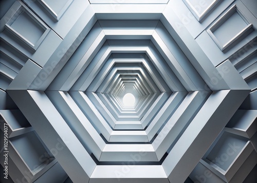 Obraz premium Nested White and Gray Concentric Hexagons in Dynamic Composition for Modern Design