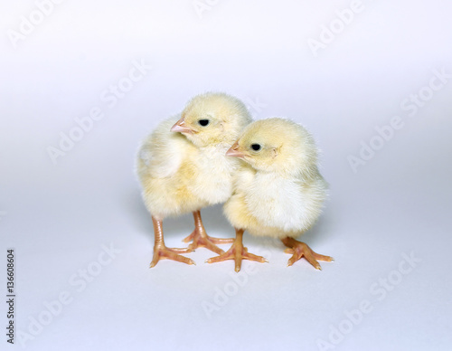 © kingan, Fototapeta premium Nestlings little yellow chicks