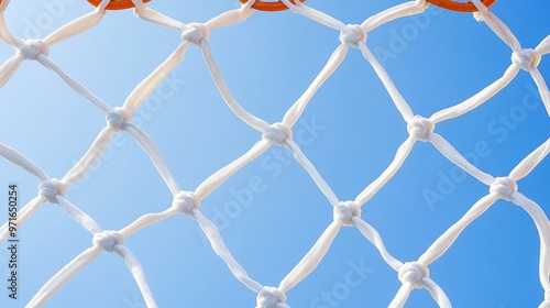 Fototapeta premium Net stretched as basketball scores, clear sky.