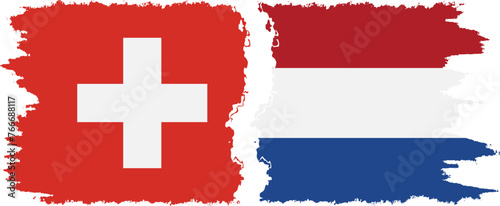 © gladder, Fototapeta premium Netherlands and Switzerland grunge flags connection vector
