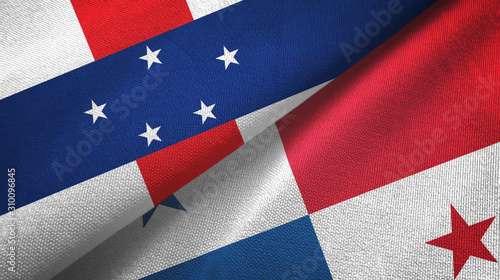© Aleks Taurus, Fototapeta premium Netherlands Antilles and Panama two flags textile cloth, fabric texture