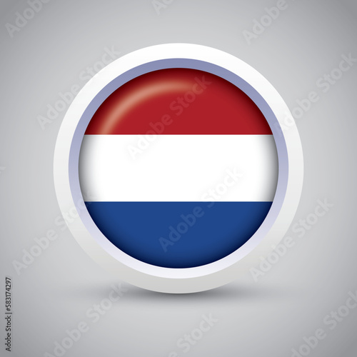 © WH Graphic Design, Fototapeta premium Netherlands Flag Glossy Button on Gray Background. Vector Round Flat Icon