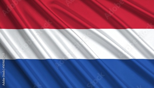 Fototapeta premium Netherlands national flag with three horizontal bands: top red, middle white, bottom blue—symbolizing independence, unity, and historic republican values.