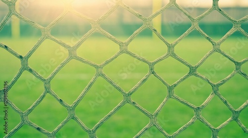 Fototapeta premium Netting glimmers under sunlight, framing lush green grass of soc