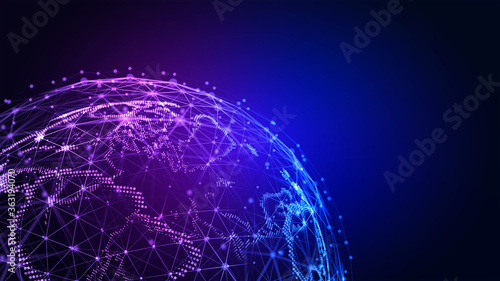 Obraz premium Network background with World map Globe. Internet and technology. 3d...