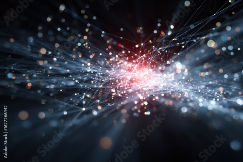© Second, Fototapeta premium Network Connection Data flow with shining lights and dots. Tech background use