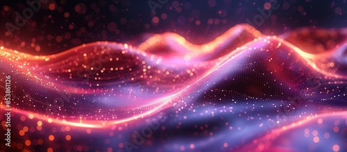 © MBRAMO, Obraz premium Network connection structure, wave weaving lines on abstract background.