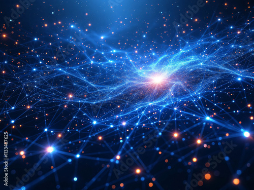 © Zilvinas, Naklejka premium Network, Connectivity, Digital, Technology, Nodes, Lines, Dots, Blue, Glowing, Web, Internet, Data, Information, Communication, Links, Grid, Matrix, Cyberspace, Virtual, Online, Interconnected, Wires,