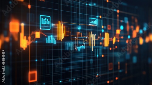 Fototapeta premium Network Data Visualization, Dashboard Display, Tech Interface, Graphic Charts Background