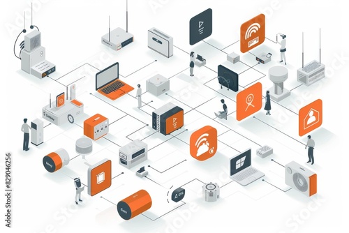 © Leo Rohmann, Obraz premium Network diagram with multiple connected devices, illustrating complex digital infrastructure