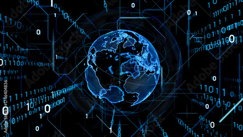 Obraz premium network, electronics, dx, digital, earth, global, circuit, computerization, technology, cyber, communication, line, radio wave, data, cloud, ai, future, cyberspace, information, world, binary code, pr